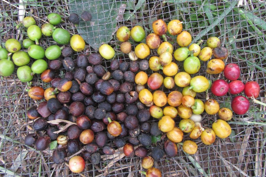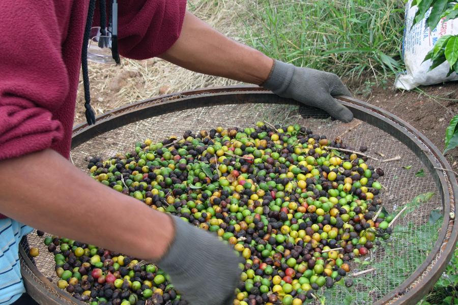 Die äusserst sensiblen Kaffeepflanzen müssen sorgfältig gepflegt werden, damit die Früchte auch gedeihen. Nach 3-4 Jahren ergeben sich erste Erträge, nach 20 Jahren ist der Lebenszenit erreicht. Um alle Kaffeefrüchte reif zu ernten, dauert es 6-8 Wochen, weil sie nicht zeitgleich reifen.